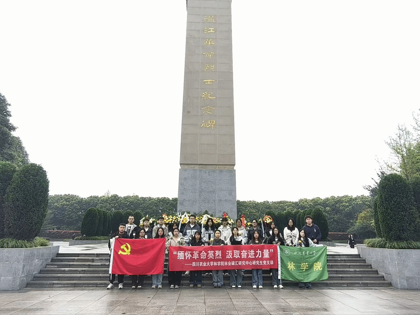 为传承红色基因,弘扬爱国主义精神,引导支部党员及积极分子铭记英烈事迹、勇担时代使命,在清明节这个缅怀先烈、寄托哀思的传统节日来临之际,林业碳汇研究中心研究生党支部于2026年4月3日前往温江烈士陵园开展“缅怀革命英烈 汲取奋进力量”祭英烈主题党日活动。