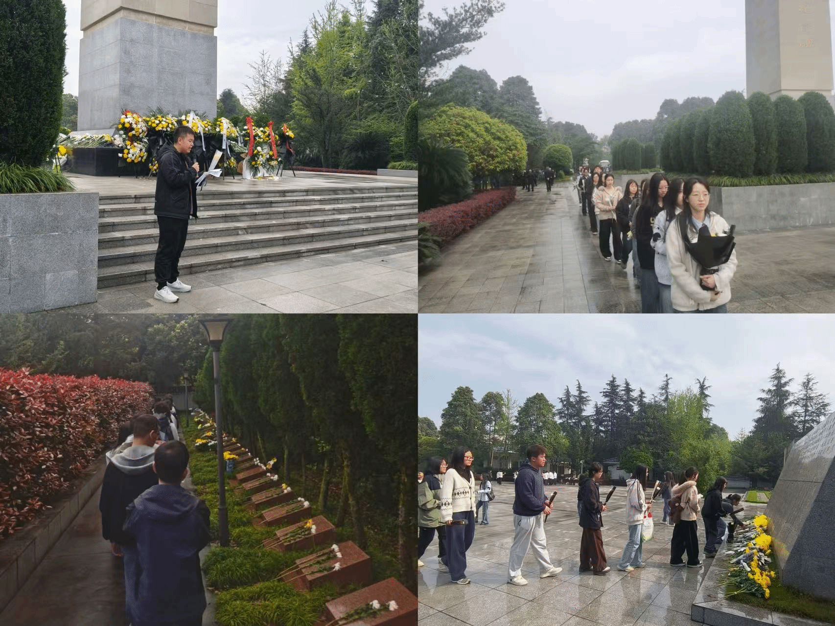 接着,全体人员列队前往追思园环行一周并举行献花仪式,代表着我们对烈士们的敬意和怀念。