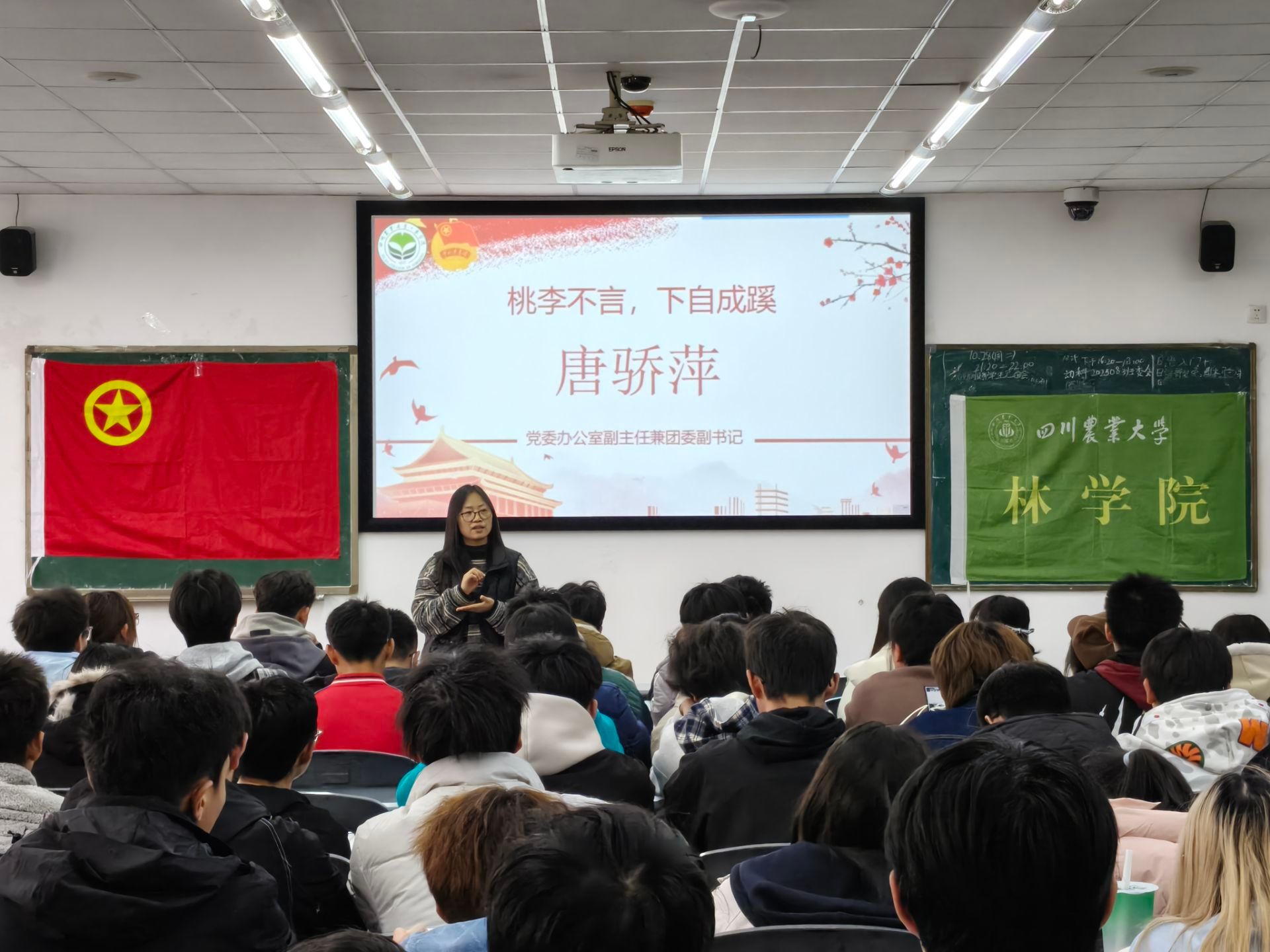活动尾声,党委办公室副主任兼团委副书记唐骄萍老师作总结寄语。她再次将焦点引向“十五五”规划,深入剖析其对于当代大学生的重大意义,殷切期望同学们深刻理解时代使命,做好个人生涯规划,将青春汗水挥洒在“强农兴川”的广阔天地中,以诚信之姿、奋进之态,书写无愧于时代的青春答卷。