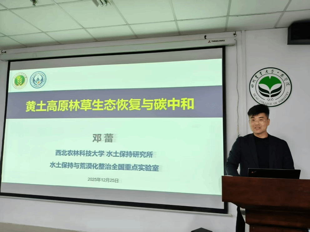 12月25日下午,西北农林科技大学邓蕾研究员应学院邀请,做客“林听新声”大讲堂,在成都校区第五教学楼306会议室为师生带来题为“黄土高原林草生态与碳中和”的学术报告。报告会由学院副院长徐振锋教授主持,吸引了50余名师生参与。